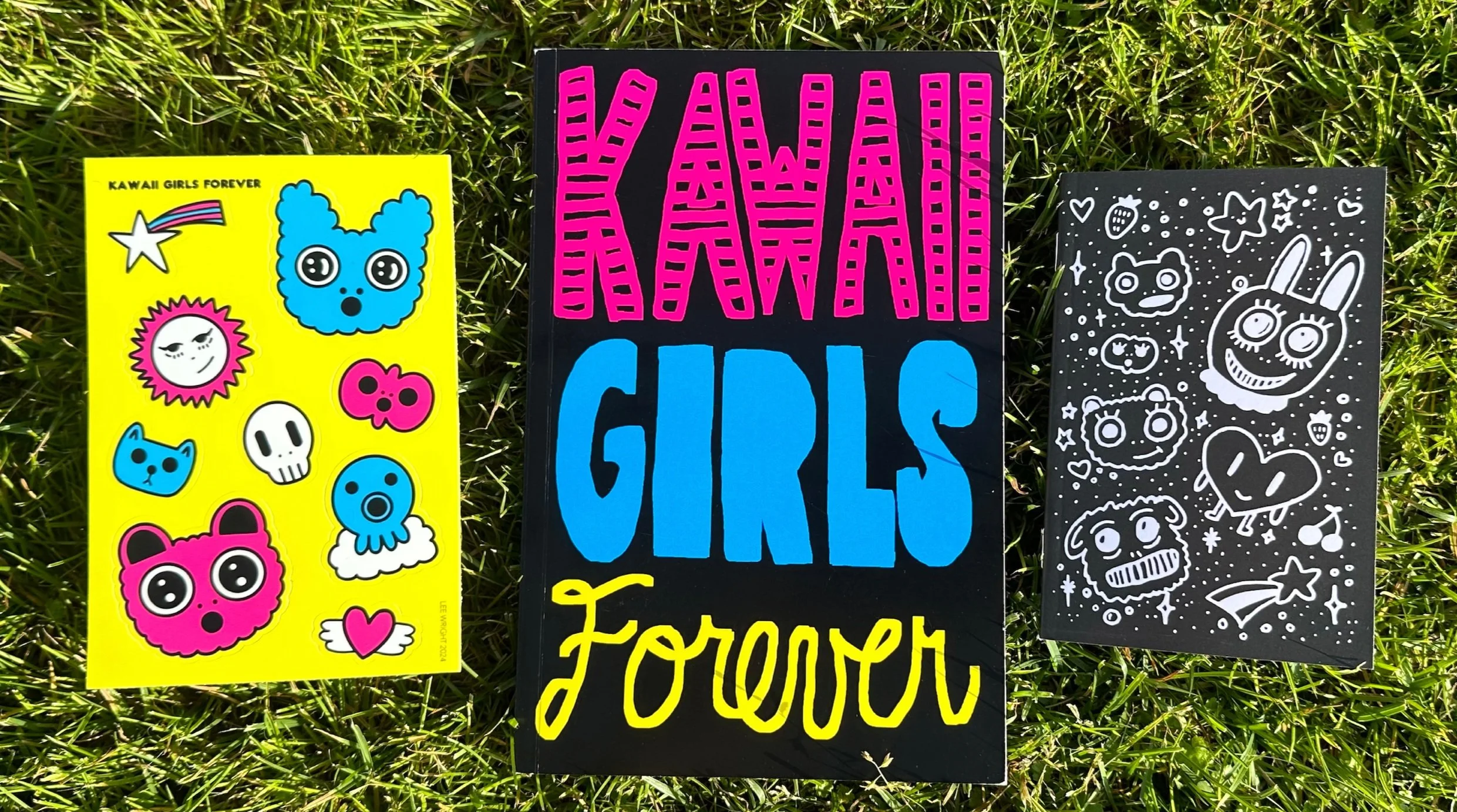 My senior thesis project consisting of a 52 page zine, notebooks, and sticker sheets. KAWAII GIRLS FOREVER is all about perseverance, faith, and hope. Written and illustrated through a kawaii lens, this work was inspired by losing my dad to ALS in 2022. Featuring journal entries and illustrations I did during the grieving process, I hope to inspire others to carry on.